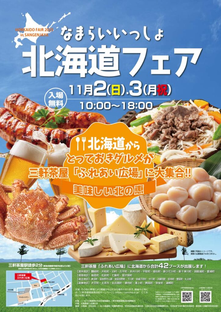 北海道フェア2025開催決定! 毎年パワーアップしている北海道フェアが今年も開催決定です。今年は過去最大の64事業者が三軒茶屋ふれあい広場に大集合! 北海道の旨いものが集まる2日間をお楽しみに!開催詳細は決定次第、掲載いたします。